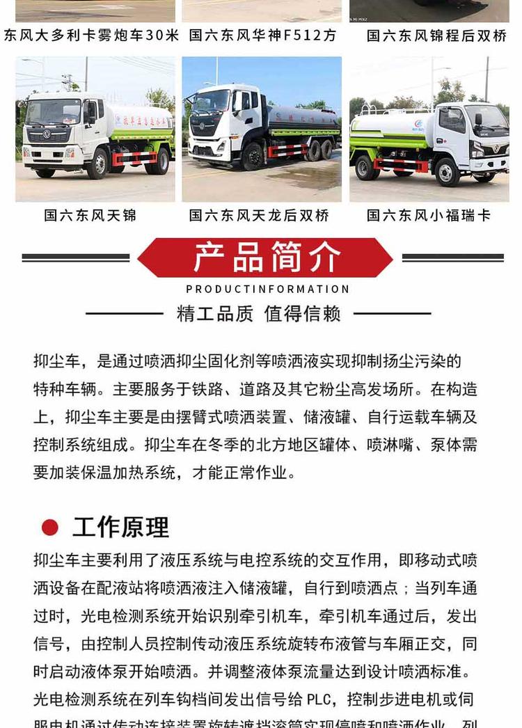 東風天津6 12方噴頭頂裝:罐體實際容積為12方,采用武鋼優(yōu)質碳鋼,方圓罐結構。標準配置:前鴨嘴、前沖、后噴、側噴、后對機**、大型沖孔平臺(無積水、無腐蝕)、管道加厚、大口徑球閥、氣動閥門**開關、內罐防銹.東風天津6 12方噴頭可選配置:霧炮、電子水炮、箭燈。