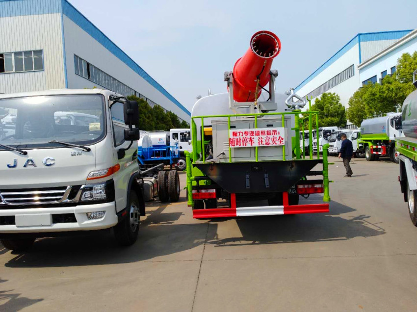 帶側噴(花灑)、帶后工作平臺、平臺上安裝綠化灑水高炮(炮噴射形狀可調節:直沖、