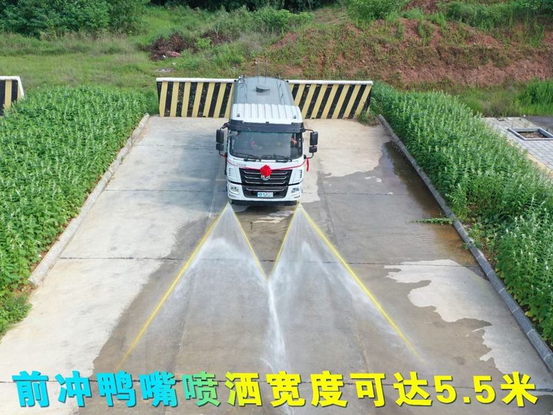 專用功能說明: 用功能配置:罐體實際容積約為14.2立方米,采用武鋼優質碳鋼板卷壓成型。配備專用灑水泵,自吸自排,前噴后灑、側噴、后工作平臺及灑水高壓炮。灑水泵自吸高度為6米左右,整車灑水寬度14米左右,后工作平臺水炮可調成:直沖狀、大雨、中雨、小雨、毛毛雨,有效射程≥28米,整車帶接頭、水位計,自流閥。后工作平臺主管路帶1寸澆花接口,附送2根3米水管,1個爬梯,兩側及后保險杠。