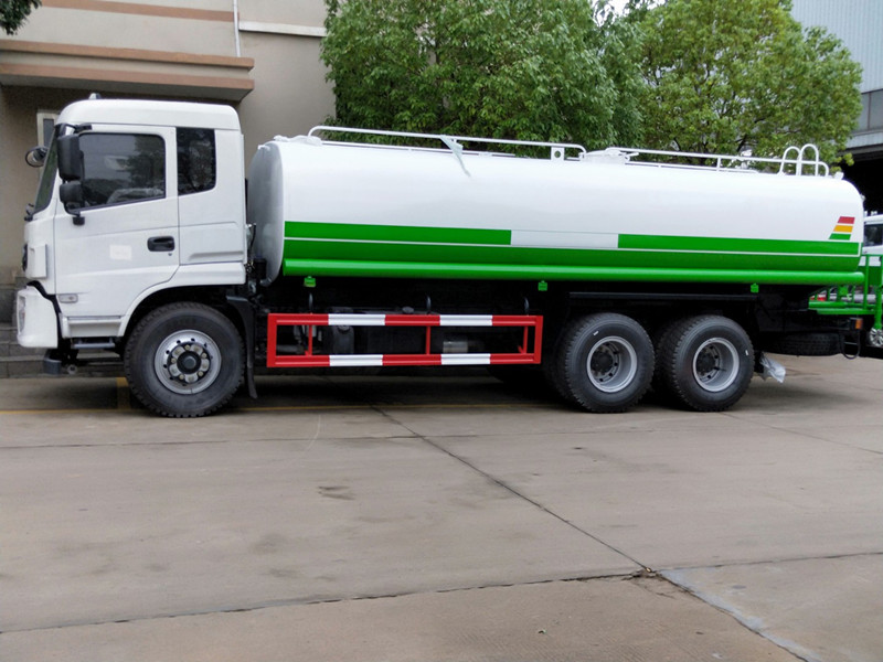 隨底盤選裝駕駛室;選裝側噴及農藥炮;品名:;密度:1000千克/立方米;有效容積:15.6立方米;罐體外形尺寸(×長軸×短軸)(mm):6600×2300×1500;ABS吸程≧7米,灑水寬度≧14-16米,射程25-30米,引水時間<5min,流量60m3/h。前沖()、后灑、帶側噴(花灑)、帶后工作平臺、平臺上安裝綠化灑水高炮(炮噴射形狀可調節:直沖、大雨、中雨、毛毛雨、霧狀、可連續調節,360°旋轉),配消防接口,自流閥,濾網,帶自吸自排功能配備大功率專用灑水泵,泵可自吸自排,安裝過濾網,帶消防接口,可通過消防栓進水,帶自流閥,隨車選裝20米綠化卷盤,可噴灑農藥,罐體金屬漆。罐體有橢圓和方圓罐兩種,可根據用戶的要求定做。