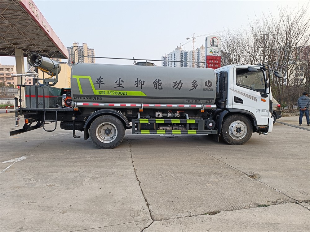 東風華神 T3 10 方抑塵車-灑水車產品配置 1.底盤配置: 發動機玉柴 165 馬力(四缸),萬里揚六檔箱,190mm 雙層大 梁,8.25 鋼絲胎,軸距 3800,2.4/6 前后橋,中控鎖,電動玻璃,助 力,空調,多功能方向盤,氣囊座椅。2.上裝配置: 1、罐體約為 10 方,可加裝 30 型霧炮 2、邊燈帶電,罐體尾部上方標配 2 個紅色示寬燈, 3、標配前噴為鴨嘴直沖,標配后沖,用戶可根據自己的需求,來調 整對沖位置。 4、花紋防滑平臺,炮筒后蓋為定制型螺栓卡扣, 5、前噴、后沖、后灑、側噴,綠化高炮開關球閥均采用 50 大通經 不銹鋼球閥, 6、新式軸承式水炮,更加耐用, 7、40-50 型水泵, 8、防腐法蘭墊片, 9、鋁制后灑,不易炸開 10、罐體自動焊(美國林肯焊機及電源),拼板自動焊接,封頭環 縫焊接,無氣孔,焊縫美觀。 11、側護網、后保險杠、均為螺栓連接,方便拆卸,維修方便。 12、塑料擋泥板,替代鐵擋泥板,更加輕便,用螺栓連接,方便拆 卸。 13、前部、后部主管連接處為 6 孔圓法蘭,不易沖墊