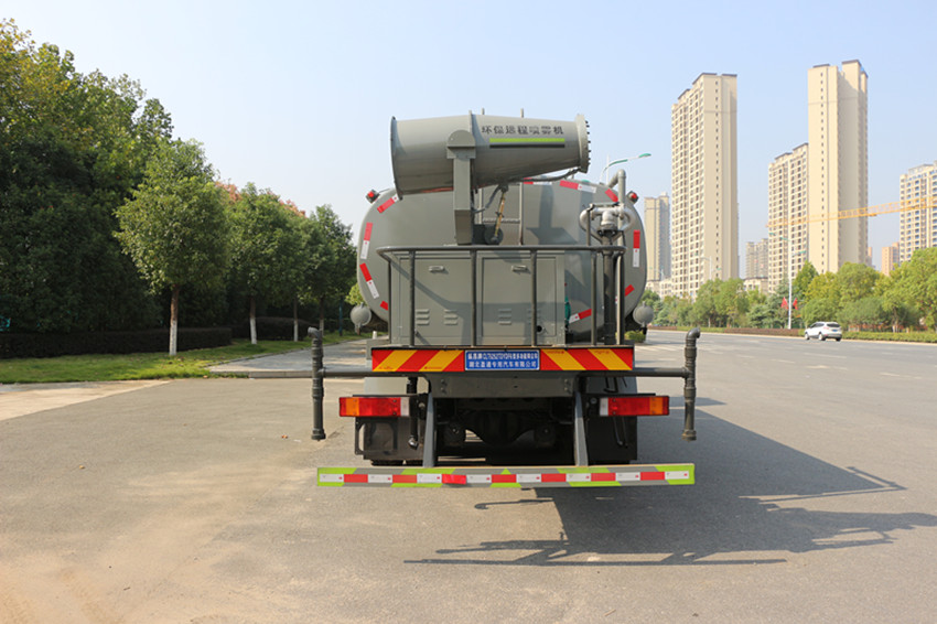 灑水車上裝配置:罐體采用5mm厚武鋼集團(tuán)供應(yīng)的罐車專用板材制作,容積:20立方;罐內(nèi)3道防浪隔板具有防波作用,減低罐內(nèi)液體的沖擊。配備國內(nèi)大功率灑水車專用水泵,可自吸自排,引水時(shí)間<15min,流量60m3/h,揚(yáng)程90米。東風(fēng)天龍灑水車其它專用部分標(biāo)配為:前沖、后灑、側(cè)噴、后工作平臺、360度可調(diào)節(jié)綠化水炮,水泵垂直吸程≧7米,前沖灑水寬度≧16米,綠化水炮射程≧35米,自流閥、濾網(wǎng)、消防接口(可連接消防栓取水,可作應(yīng)急消防用)。罐前量管(觀察罐內(nèi)水位)、罐后爬梯、罐上罐口帶簡易護(hù)欄、罐側(cè)雙炮筒、6米長4寸鋼絲塑膠管兩根,罐體表面雙層油漆工藝,防銹、耐腐蝕,其余有廠家標(biāo)配。可選擇加裝加裝藥盤、氣動(dòng)控制閥、噴藥設(shè)備、罐內(nèi)防腐等。
