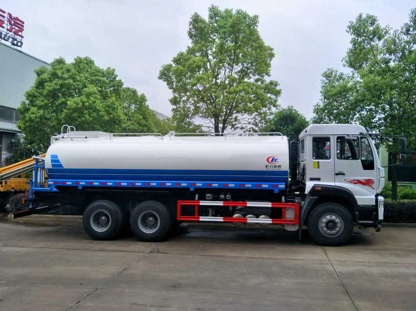 有免征公告,可以免購置稅,嚴格按照公告尺寸生產,罐體實際容積20方,罐體采用國標武鋼碳鋼板材制作,帶泵,可泵進泵出,帶前沖、后灑、側噴,后工作平臺帶綠化高射炮。平臺上安裝鋼制芯專用大功率綠化灑水高炮(炮有直流狀、大雨、毛毛雨、霧狀可調節,可噴灑農藥),配備大功率專用灑水泵,帶消防接頭,帶自流閥,帶自吸功能。同時可以用于臨時應急消防灑水,每輛灑水車都配備消防專用接口。由發動機帶動變速箱,變速箱上安裝的取力器帶動灑水泵,灑水泵產生主要動力,將罐體內部的液體通過管網噴灑出去。自吸高度:≤7m,灑水寬度:≥20m,最大射程:≥28m;可調節成柱狀,射程≥28m;也可調節成霧狀,射程≥15m。前噴后灑,前裝有鴨形噴嘴或圓頭沖嘴,后面裝有圓柱開灑水噴嘴或蓮蓬頭噴嘴,后部有一工作平臺,裝配有高壓水炮。后部還可裝8個噴嘴(選裝)噴水器一般用于沖洗街道。可選配藥盤、打藥機。也可加裝藥盤、藥泵、罐內防腐防銹、多方位進出水接頭、電磁閥、氣動閥等先進設施,以滿足不同用戶需求。