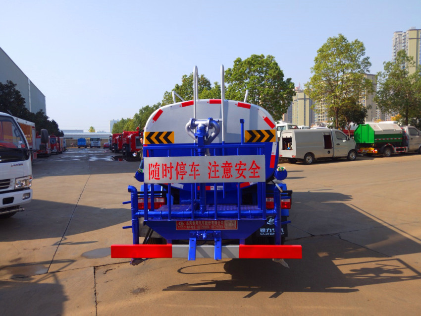 國(guó)五東風(fēng)多利卡灑水車,罐體容積5立方米,該車具有免征公告(可免交車輛購(gòu)置稅)。采用武鋼4mm優(yōu)質(zhì)碳鋼板一次卷壓成型,完全做到無(wú)縫成型。罐體內(nèi)設(shè)多道防波隔板,采用高壓氣體試漏檢測(cè),使罐體具有強(qiáng)度高,重心穩(wěn),車輛運(yùn)載安全平穩(wěn)。罐體外表為烤漆,罐體及各保險(xiǎn)杠貼紅白色視覺反光條,罐體兩側(cè)噴“綠化灑水車”字樣(可按您的要求噴繪字樣),罐體顏色出廠為上白下綠或上白下藍(lán)(可按您的要求噴繪顏色)。