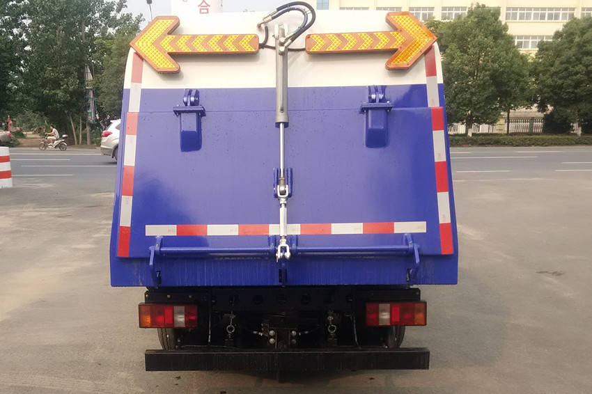 9、福田小型掃路車駕駛室手動按鈕式液壓系統驅動左右立掃升降、左右掃盤旋轉、吸嘴升降、垃圾箱后門開閉、垃圾箱傾翻復位等機械動作。