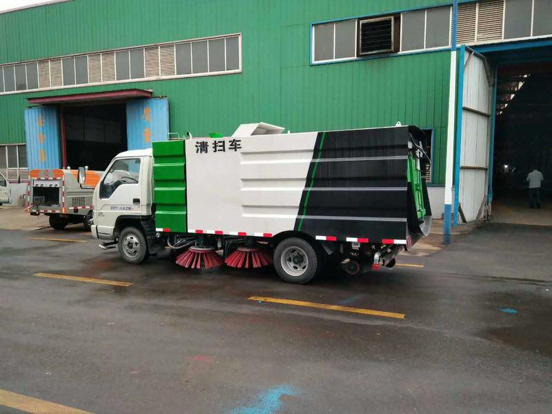 該掃路車采用福田型二類底盤改裝,加裝副發(fā)動機、風機、清水箱、垃圾箱、左右立掃、后置盤,掃盤降塵系統(tǒng),液壓系統(tǒng)、專用裝置電控系統(tǒng)和副車架等改裝而成。