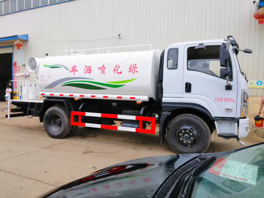 灑水車,又稱綠化噴灑車。城市環衛主力車型大致有10噸灑水車,15噸灑水車,也可以加裝霧炮,成為專用霧炮車。主要用于道路清掃,園林綠化,森林滅火,工業除塵,消防急救等。具有自吸自排功能,垂直吸≥6米,前沖后灑,側噴,灑水寬度≥14米,后置工作臺,帶綠化灑水高炮,射程≥28米,高壓炮噴水可調節成柱狀和霧狀,配備大功率專用灑水泵,帶消防接頭,自流閥,帶自吸功能。如果有消防選裝消防泵,射程可達50-60米