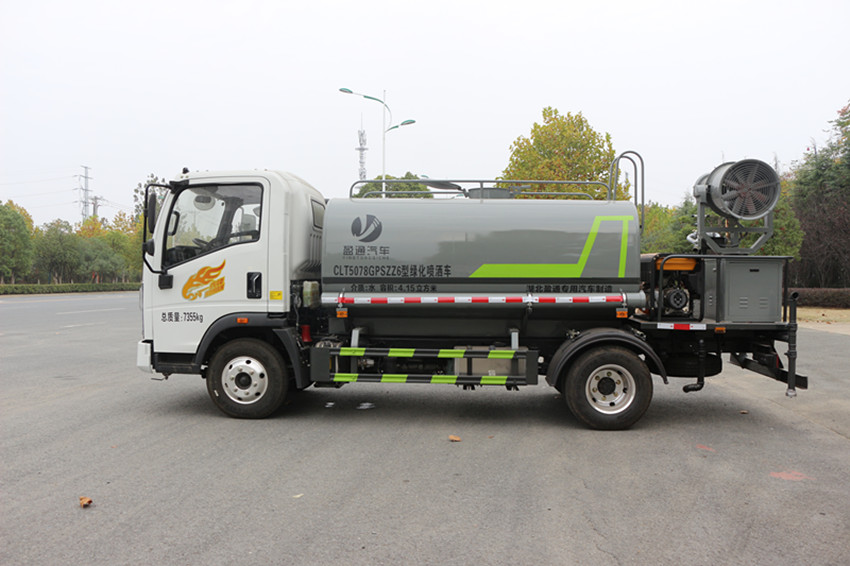灑水車:采用4mm**碳鋼板,罐內(nèi)制作減震波浪隔板,配置灑水車專用水泵(能實現(xiàn)泵進泵出功能),安裝前沖、后灑、側(cè)噴、灑水車平臺、灑水高炮(可調(diào)節(jié)直流、大雨、小雨、毛毛雨、霧狀效果),帶兩根吸水管,電子音樂喇叭及消防接口。(注:帶自動灑水功能)