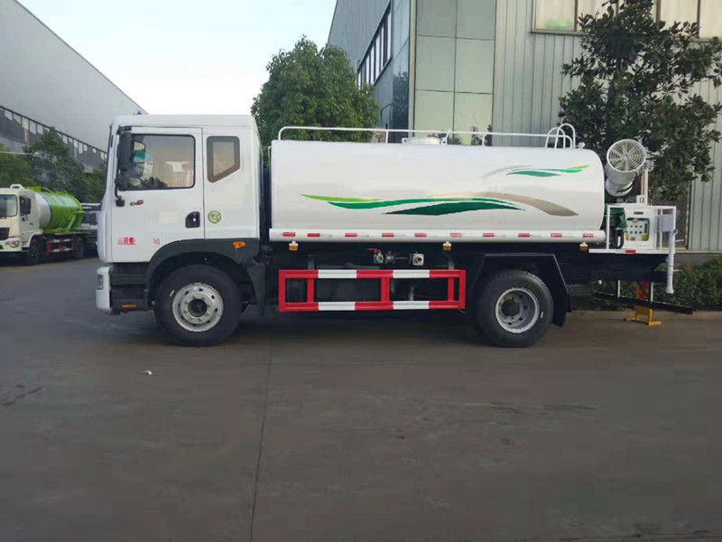 抑塵車吸程≧7米,灑水寬度≧14-16米,射程≧25-40米,引水時間<5min,流量60m3/h。前沖(噴)、后灑、帶側噴(花灑)、帶后工作平臺、平臺上安裝綠化灑水高炮(炮噴射形狀可調節:直沖、大雨、中雨、毛毛雨、霧狀、可連續調節,360°旋轉),配消防接口,自流閥,濾網,帶自吸自排功能。配備大功率專用灑水泵,泵可自吸自排,安裝過濾網,帶消防接口,可通過消防栓進水,帶自流閥,此車尾部加裝大功率農藥噴灑炮,噴灑狀態霧狀,有效射程15-45米,外部平臺帶獨立的機組。