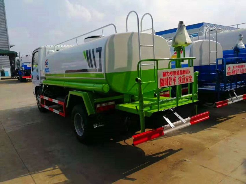 國(guó)六灑水車專用配置:罐體容積5立方,罐體采用國(guó)標(biāo)Q235碳鋼材質(zhì),罐體厚度4MM,前后封頭5MM加厚型,罐體內(nèi)雙層隔板具有防波蕩作用,以減輕汽車行駛時(shí)罐內(nèi)液體沖擊;灑水車整車及外形尺寸嚴(yán)格按照國(guó)家機(jī)動(dòng)車公告制作而成;裝配大功率專用灑水泵,前沖、后灑、側(cè)噴、后平臺(tái)帶綠化灑水炮,灑水炮可全方位旋轉(zhuǎn),可連續(xù)調(diào)成直沖狀、大雨、小雨、毛毛雨;配消防接口,自流閥,濾網(wǎng),帶自吸自排功能。前封頭帶水位計(jì),后平臺(tái)主管路帶1寸澆花接口,后爬梯,帶1個(gè)消防接頭,帶1個(gè)自流閥,1個(gè)過濾裝置,其余標(biāo)配。1、可選裝后平臺(tái)帶霧炮機(jī)組用于噴霧降塵、農(nóng)藥噴灑作業(yè);2、可選裝前置電子灑水炮駕駛室操作;3、可選裝氣動(dòng)球閥駕駛室操作。