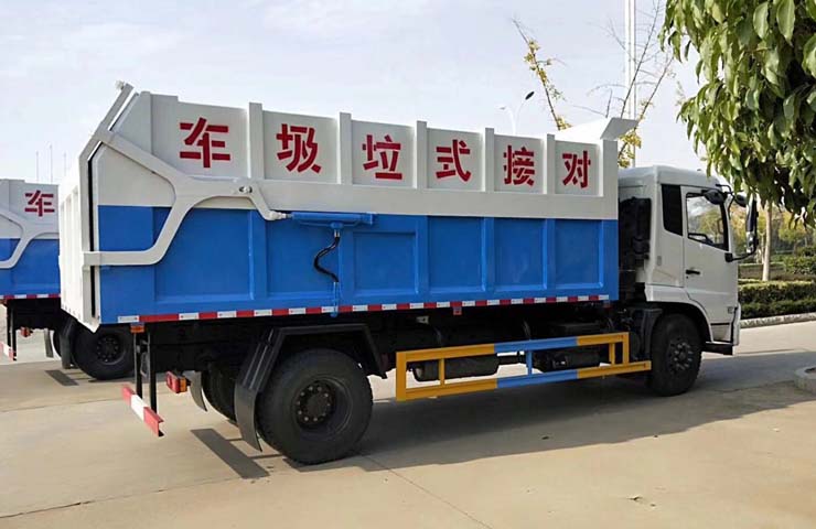 描述:對接式垃圾車又稱垃圾壓縮站對接式垃圾車:是用于城鎮(zhèn)垃圾壓縮站內(nèi)的垃圾轉(zhuǎn)運、卸料作業(yè)的專用車輛。該車操作系統(tǒng)是由液壓控制系統(tǒng)來完成,控制方式可以為手動或電氣控。壓縮垃圾站在將垃圾壓縮成塊后將垃圾箱體垂直舉起,并打開壓縮箱排泄門,這時垃圾車箱體后門向上旋轉(zhuǎn)開啟,垃圾車后門與壓縮箱后門對接,之后垃圾塊被壓縮箱內(nèi)的推板水平推進到垃圾車箱體內(nèi),完成垃圾裝載后關(guān)閉垃圾車后門,將垃圾運到垃圾處理地進行傾卸。