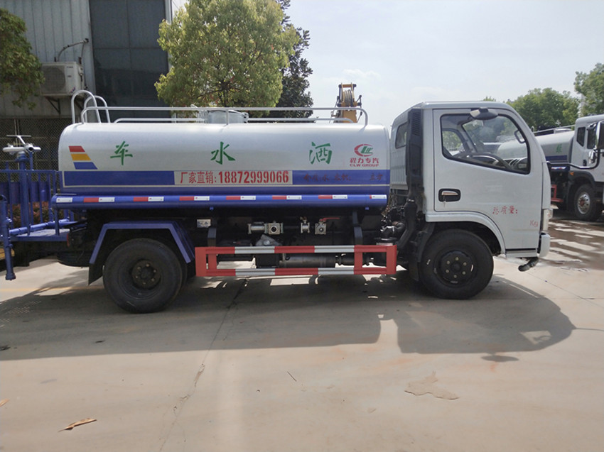 3、東風多利卡灑水車(6噸—8噸)該車采用東風朝陽120馬力柴油發動機和東風康明斯140馬力柴油發動機,7.50-16輪胎,帶方向助力,帶增壓,不帶空調,汽剎,5檔變速箱,2.2噸前橋, 5噸后橋,整車外形尺寸:長×寬×高(mm) 6995×2300×2550,總質量(kg):11495,額定質量(kg):4300,整備質量(kg): 7000,該車罐體有效容積:6噸-8噸,帶免征公告。