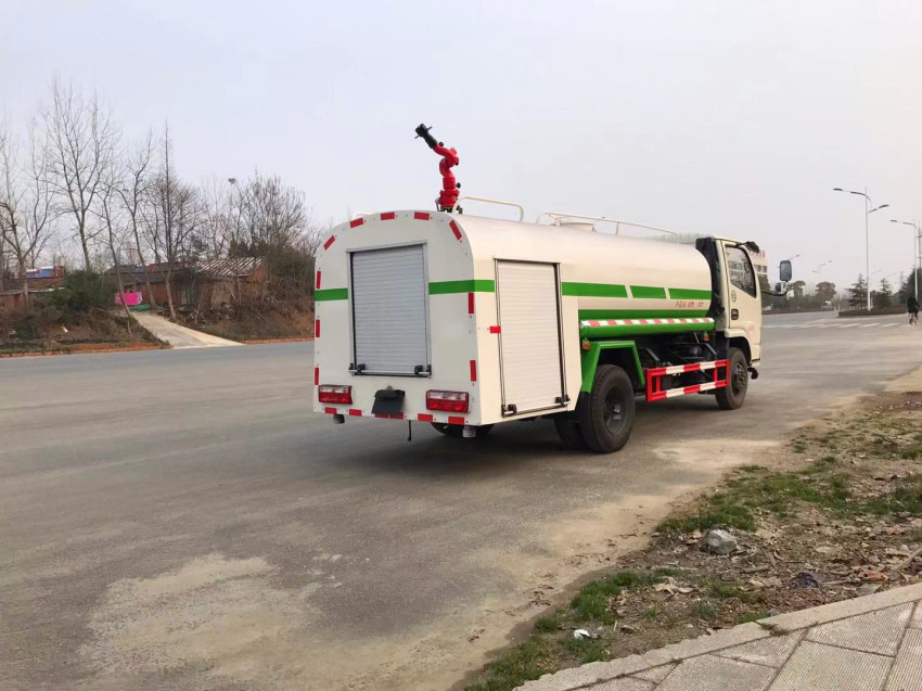 上裝配置:罐體采用武鋼專用容積板制作,實(shí)際容積5立方,罐內(nèi)隔板具有防波作用,以減低汽車行駛時(shí)罐體液體的沖擊。泵進(jìn)泵出,消防栓接口,前沖、后灑、側(cè)噴、后工作平臺(tái)帶綠化水炮,垂直吸程 7米,灑水寬度 14-16米,射程 20-25米,引水時(shí)間5min,流量90m3/h。自流閥、濾網(wǎng)、帶自吸自排功能。兩根等長(zhǎng)輸水管,金屬漆,其余標(biāo)配。可加裝方向助力、空調(diào)、加裝藥盤、氣動(dòng)控制閥、噴藥設(shè)備、非車帶泵動(dòng)力等。