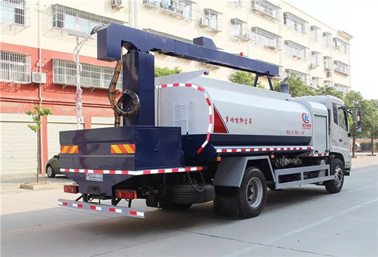 罐體為10立方圓形罐,罐體內部做防腐,前沖、后灑、側噴、高炮,抑塵噴灑桿(帶旋轉伸縮功能)。噴灑桿離地3.5-4.5米 ,后部平臺帶8KW副發電機組,罐體內部加兩個1.5KW電動馬達(帶攪拌功能)罐體噴漆上白下藍,平臺和噴灑桿藍色。遙控操作噴灑桿上下左右旋轉,平臺較上一臺車左右加寬20CM,電控箱安裝在后部平臺。