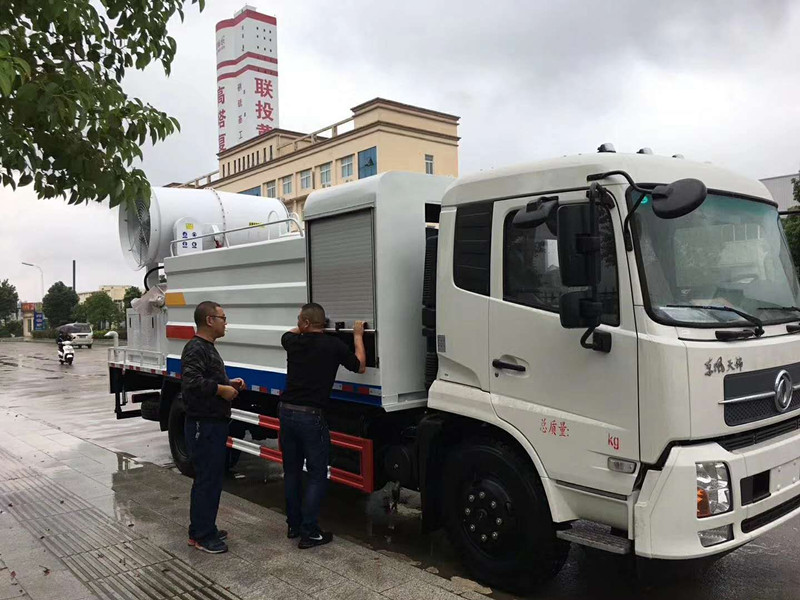 灑水炮和炮均可全方位旋轉,可連續調成直沖狀霧狀大雨小雨毛毛雨,噴藥炮霧化效果好,可遠程噴霧,射程達米,隨車裝配大功率柴油機三相交流同步發電機三相異步電動機三缸活塞泵,并安裝風機風炮,為噴灑提供專一動力來源和設備。