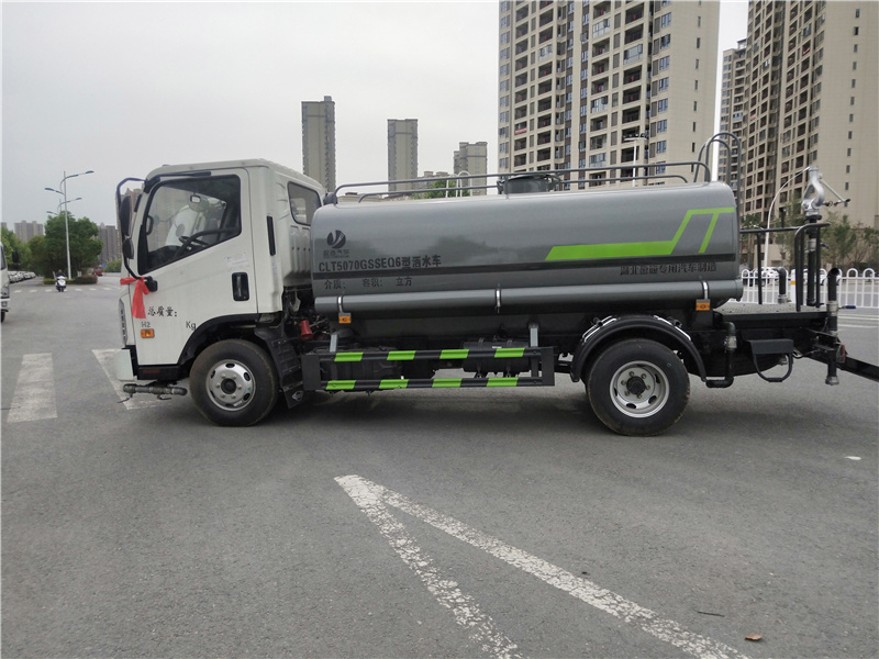 福田5噸灑水車,全柴115-130匹馬力國六發動機 軸距3308,萬里揚5檔變速箱,700R16鋼絲輪胎,電動玻璃,中控鎖,ABS,原廠空調,,罐體采用武鋼優質鋼材制作,專用功能為:前沖后灑,帶側噴,罐體后帶工作平臺,平臺上安裝綠化灑水高炮,帶專用灑水車水泵,帶自流閥,帶消防接頭,發國六上戶手續,上戶免購置稅,罐體有效容積5立方