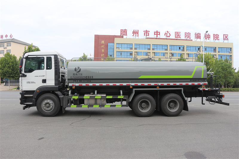 配備大功率專用灑水泵,泵可自吸自排,安裝過濾網,帶消防接口,可通過消防栓進水,帶自流閥,隨車選裝20米綠化卷盤,可噴灑農藥,罐體金屬漆。罐體有橢圓和方圓罐兩種,可根據用戶的要求定做
