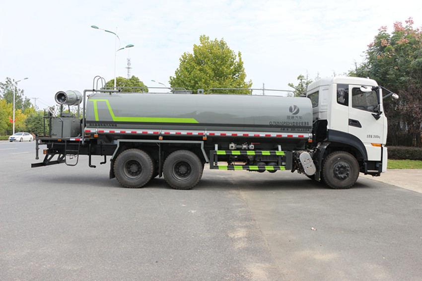 東風天龍KL后雙橋國六灑水車主要功能有:前沖、后灑、側灑、高炮(可調成柱狀或霧狀、可噴灑農藥)、帶過濾裝置、自吸自排、帶自流閥,帶消防接頭。帶有綠化水槍和可調式噴頭,噴頭角度可根據路面的寬窄進行調整,廣泛用于環衛、園林、公路等部門。灑水車罐體采用武鋼優質碳鋼板材制作,采用大型卷板機一次成型,罐體內部采用防浪板結構,可有效阻止罐體內部水的晃動性,加強車輛使用穩定和罐體使用壽命。封頭及罐體結合處采用先進的弧形對接焊接工藝。
