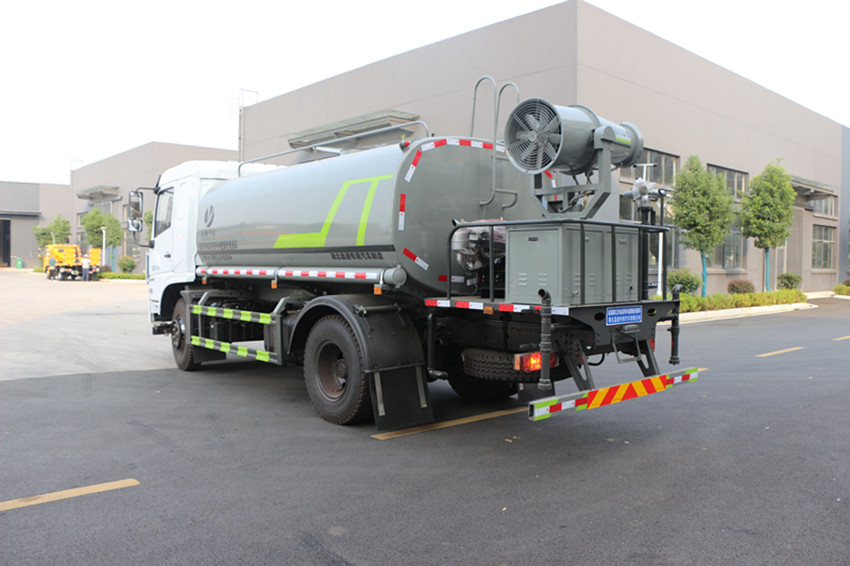 東風12噸多功能抑塵車專用裝置為抑塵霧炮,用于城市抑塵.側面防護材料:Q235A碳鋼.連接方式:左右側面采用焊接連接.