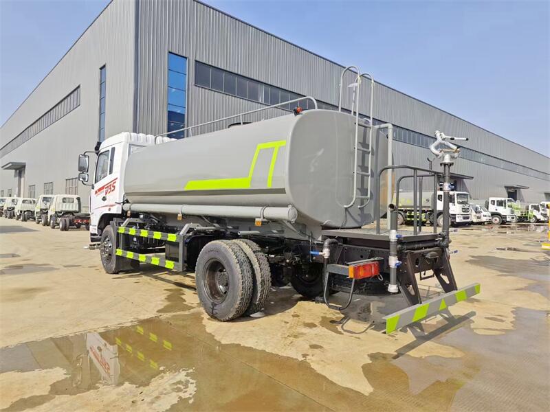 12噸灑水車標配前噴(鴨嘴)、后沖、后灑、側噴、后置式工作 平臺,平臺上配置綠化水炮(可 360°旋轉,既可以調成柱狀,也可 以調成霧狀,更可以調成直沖狀、大雨、中雨、小雨、毛毛雨),配 備優質大功率專用灑水泵(可自吸自排,可從河里或池塘抽水到罐體), 取力器,雜物過濾網,消防接口,自流球閥系統、取力器、球閥、濾網 均為國家標準產品,主管道加粗,法蘭墊、法蘭盤加厚,大通徑球閥。 整體具備性能優良安全可靠、效率高、流量大、維修方便等特點。
