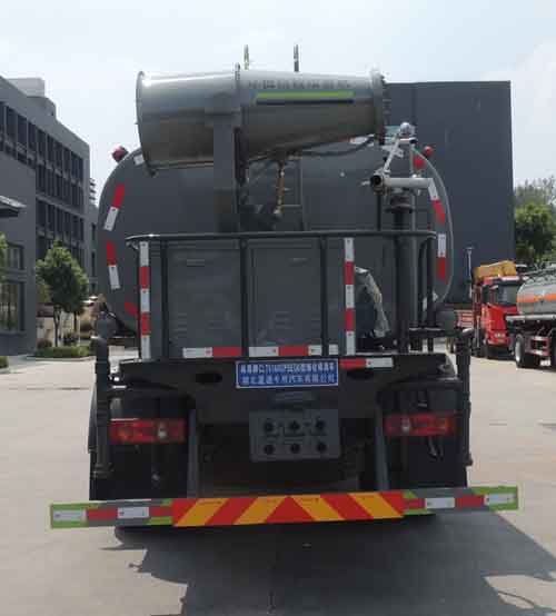 東風華神12方灑水車產品標配前噴(鴨嘴)、后沖、后灑、側噴、后置式工作 平臺,平臺上配置綠化水炮(可 360°旋轉,既可以調成柱狀,也可 以調成霧狀,更可以調成直沖狀、大雨、中雨、小雨、毛毛雨),配 備優質大功率專用灑水泵(可自吸自排,可從河里或池塘抽水到罐體), 取力器,雜物過濾網,消防接口,自流球閥系統、取力器、球閥、濾網 均為國家標準產品,主管道加粗,法蘭墊、法蘭盤加厚,大通徑球閥。 整體具備性能優良安全可靠、效率高、流量大、維修方便等特點。