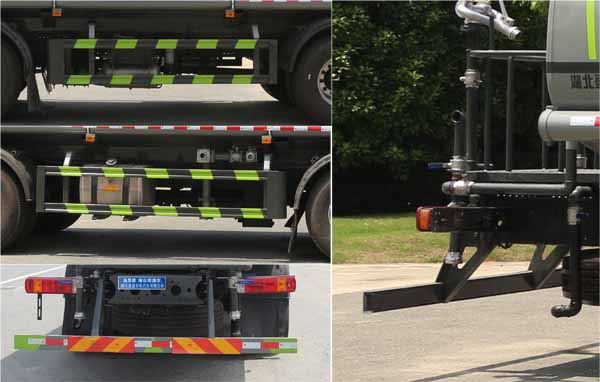 備注 | 該車主要用于城鄉(xiāng)園林綠化噴灑;主要裝置為罐體及噴灑裝置;罐體總?cè)萘?16.07立方米,罐體有效容積:15.3立方米,罐體外形尺寸(長×長軸×短軸)(mm):6700×2400×1470;側(cè)、后防護材料均為:Q235碳鋼,連接方式均為:螺栓連接,后部防護截面尺寸(mm):120×50,后部防護離地高度(mm):480;ABS系統(tǒng)型號/生產(chǎn)企業(yè)對應(yīng)關(guān)系:CM4XL-4S/4M,廣州瑞立科密汽車電子股份有限公司.采用底盤2100+4200軸距(mm)。選裝后部箭頭燈,選裝后部弧形噴灑裝置,選裝噴灑裝置樣式,選裝水炮支架位置,選裝自動球閥安裝位置。隨底盤選裝駕駛室。 | ||