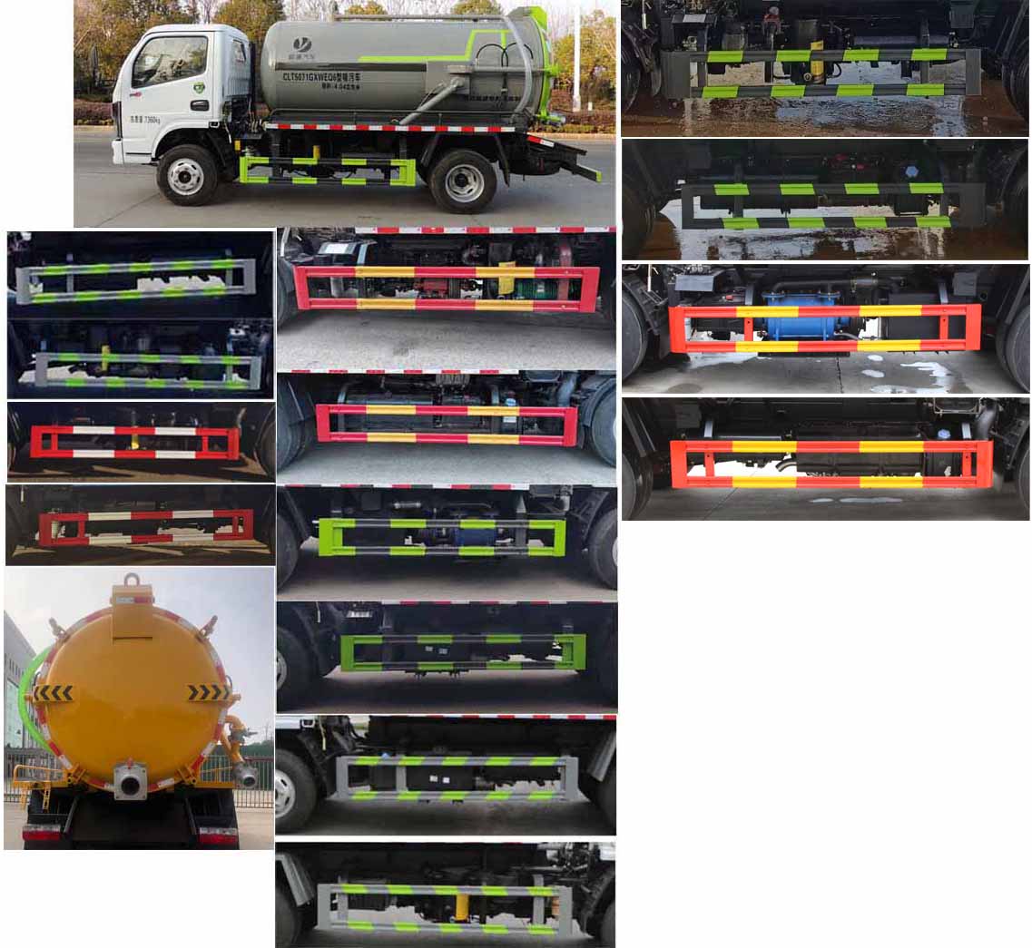 隨底盤選裝燃油箱,電瓶,尿素罐,儲氣筒左右安裝位置.該車用于吸除水坑、下水道里污濁物;主要裝置有罐體及吸污裝置;罐體總容量:4.04立方米,罐體有效容積:3.85立方米,罐體外形尺寸(總長×直徑)(mm):3800×1300;ABS型號/廠家:ABS/ASR-12V-4S/4M/襄陽東風隆誠機械有限責任公司;側、后防護材料均為:Q235碳鋼,連接方式均為:螺栓連接,后部防護截面尺寸(mm):120×50,后部防護離地高度(mm):410.卸料方式為后卸式;隨底盤選裝駕駛室,選裝燃油箱,電瓶,尿素罐,儲氣筒左右安裝位置.選裝后部樣式。