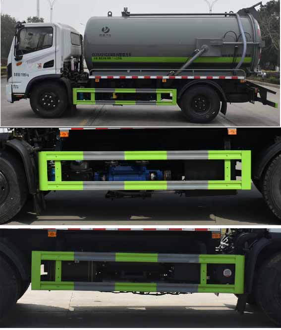 隨底盤選裝底盤布置。該車主要用于下水道排污及疏通,主要裝置為罐體和吸污裝置;隨底盤選裝駕駛室;罐體總容量:7.4立方米;罐體有效容積:7.05立方米;罐體外形尺寸(總長×直徑)(mm):4800×1550,4700×1600;ABS型號/廠家:ABS型號及生產廠家為:3631010-C2000/東科克諾爾商用車制動系統(十堰)有限公司,J ABS/焦作博瑞克控制技術有限公司;卸料方式為舉升后卸式;側、后防護材料均為:Q235碳鋼,側防護采用螺栓連接,后防護采用焊接連接,后部防護截面尺寸(mm):120×50,后部防護離地高度(mm):450.選裝左邊樣式。