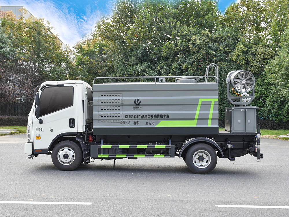 福田5方霧炮灑水車 整車型號 CLT5043TDYBJ6 型多功能抑塵車 2 發動機型號 Q23-115C60 3 發動機馬力/功率 全柴 115 馬力/85KW 4 發動機排量 2300ML 5 變速箱 萬里揚 5 檔 6 輪胎規格 7.00 鋼絲胎 7 軸距 3360 8 總質量 4495KG 9 整備質量 3800KG 10 額定載質量 500KG 11 整車尺寸(長×寬×高) 5.998*1.99*2.6 12 罐體容積 5 方 13 燃料種類 柴油 14 排放標準 國六 15 水泵型號 40/50 16 罐體材質 Q235 碳鋼