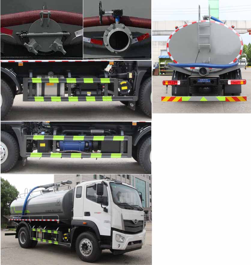 備注 | 福田12方-15方抽糞車主要專用裝置:罐體及吸糞裝置,主要用于抽排運污水、糞便、泥漿等液態污物;隨底盤選裝駕駛室,罐體總容量:12.9立方米;罐體有效容積:12.38立方米;罐體外形尺寸(長×長軸×短軸)(mm):4400×2350×1600;ABS控制器型號為CM4XL-4S/4M,ABS控制器生產企業為廣州瑞立科密汽車電子股份有限公司;側、后防護材料均為:Q235碳鋼,連接方式均為:螺栓連接,后部防護截面尺寸(mm):120×50,后部防護離地高度(mm):450.僅采用底盤3950mm軸距改裝.隨底盤選裝駕駛室,選裝側面樣式,選裝罐體后部出口樣式.選裝油箱電瓶安裝位置。 | ||