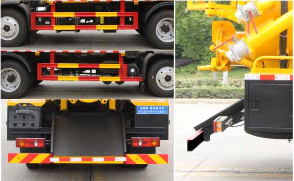 東風華神吸污車該車用于下水道排污及疏通,專用裝置:罐體、吸污泵、清洗沖刷總成.該車輛具有舉升功能.罐體外形尺寸(罐體總長×直徑)(mm):4900×1750(前面1600mm為清水罐,后部3300mm為污水罐);污水罐總容量:7.04立方米,污水罐有效容積:6.7立方米,介質:液態污物,密度800千克/立方米;清水罐總容量:3.6 立方米,有效容積:3.6 立方米,介質:水,密度1000千克/立方米;清水罐和污水罐為獨立罐體,清洗功能時用清水罐,吸污功能時用污水罐,污水罐和清水罐不可同時滿載,兩罐不可同時使用.ABS型號及生產廠家為:3631010-C2000/東科克諾爾商用車制動系統(十堰)有限公司,J ABS/焦作博瑞克控制技術有限公司;側、后防護材料均為:Q235碳鋼,側防護采用螺栓連接,后防護采用焊接連接,后部防護截面尺寸(mm):120×50,后部防護離地高度(mm):450.隨底盤選裝駕駛室新風格裝飾件,隨底盤選裝油箱,尿罐,電瓶框布置位置.選裝側面樣式,選裝后部出口樣式.