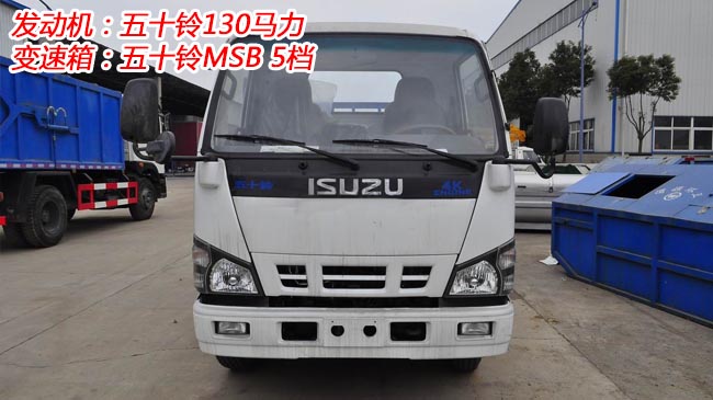 五十鈴擺臂式垃圾車,慶鈴五十鈴底盤,600P駕駛室,五十鈴130馬力發動機,五十鈴MSB5檔變速箱,帶空調,動力轉向,前橋2.5噸,后橋4.8噸,帶ABS,7.00R16鋼絲胎,雙回路式油剎,單排可反轉。