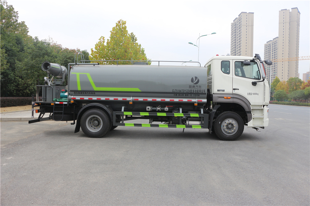 整車說明:選裝噴霧裝置樣式。該車用途為抑塵降霾.主要裝置為罐體及噴霧裝置;隨底盤選裝駕駛室;選裝附件布置;罐體有效容積:12.2立方米,罐體外形尺寸(長×長軸×短軸)(mm):4800×2400×1530,ABS系統型號為446 004 6300,生產企業為威伯科汽車控制系統(中國)有限公司。選裝EBS,EBS系統控制器生產企業:威伯科汽車控制系統(中國)有限公司,型號:EBS3。側、后防護材料均為:Q235碳鋼,連接方式均為:螺栓連接,后部防護截面尺寸(mm):120×50,后部防護離地高度(mm):480.采用4700mm軸距。