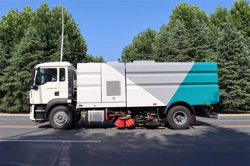 單發動機無塵掃路車是采用中國重汽二類底盤,配裝專用裝置改裝而成。該車具有清掃作業的風道轉換功能,是一種全天候作業掃路車,可根據路面狀況(垃圾量)及環境狀況(晴天或雨天)選擇干式或濕式作業模式,能夠在任何地域及氣候條件下正常工作。具有通用性強,應用面廣,適應性強,整車性能穩定可靠等特點。是各種城市道路、高速公路、廣場、機場等機械化清掃保潔等的理想工具。該車主要具有以下技術性能特點: