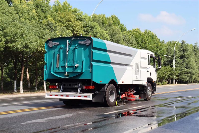 9、掃路車,清掃車洗掃車,除塵過濾系統設置三級氣力輸送除塵裝置。濾筒式過濾系統采用脈沖式除塵。除塵系統中設有氣壓開關進行壓差控制實現脈沖自動除塵;