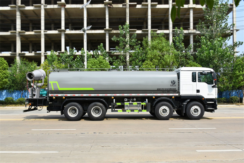 重汽25噸霧炮灑水車底盤采用重汽汕德卡專用底盤,重汽汕德卡駕駛室采用德國曼TGA駕駛室 本體改進而成,不僅美觀大方,且舒適實用;德國曼350馬力發動機 , 德國技術動力強勁且油耗低;軸距1850+3800+1350,輪胎11.00R 鋼絲胎,豪沃9檔帶同步器變速箱,掛檔輕便;德國曼7.5噸雙前橋 和11噸雙后橋, 自重輕,承載強。