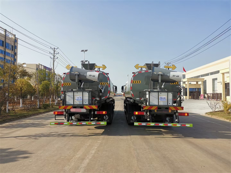 縱昂牌CLT5311TDYZZ6型多功能抑塵車標配前噴(鴨嘴 ) 、后 對沖、后灑、側噴、后置式工作平臺,平臺上配置綠化水炮(可 360°旋 轉, 既可以調成柱狀,也可以調成霧狀),配備優質大功率專用灑水泵(可自吸 自 排,可從河里或池塘抽水到罐體),取力器,雜物過濾網,消防接口,自流球閥 系統、取力器、球閥、濾網均為國家標準產品,主管道加粗,法蘭墊、法蘭盤 加厚,大通徑球閥。整體具備性能優良安全可靠、效率高、流量大、維修方便 等特點。