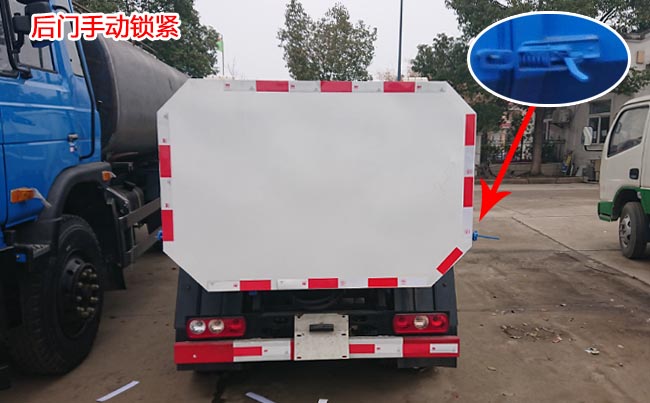 箱體容積3~4立方米,采用邊三底四材質,可雙杠液壓舉升卸料,后蓋可手動打開,右側裝掛桶提升機構,采用國產液壓系統(tǒng)、油泵、多路閥、油缸。