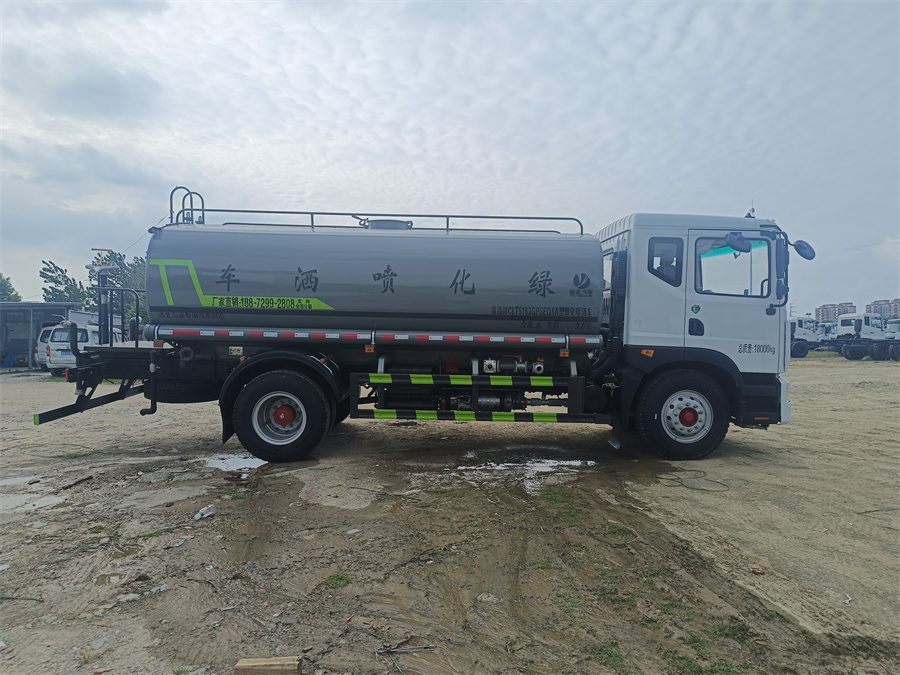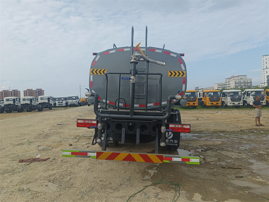 東風多利卡灑水車上裝配置:1、罐體約為 15 方2、邊燈帶電,罐體尾部上方標配 2 個紅色示寬燈 3、前噴為鴨嘴直沖,標配后對沖,用戶可根據自己的需求,來調整對沖位置 4、沖孔平臺(承載能力加強),炮筒后蓋為定制型螺栓卡扣 5、前噴、后對沖、后灑球閥均采用 50 大通徑不銹鋼球閥 6、新式軸承式水炮,更加耐用。配 60-90 型水泵 7、側噴和高炮管道加粗并配 65 大通徑不銹鋼球閥,壓力更大 8、防腐法蘭墊片 9、鋁制后灑,不易炸開 10、罐體自動焊(美國林肯焊機及電源),拼板自動焊接封頭環縫焊接,無氣 孔焊縫美觀 11、爬梯、側護網、后保險杠均為螺栓連接方便拆卸維修 12、塑料擋泥板替代鐵擋泥板更加輕便,用螺栓連接方便拆卸 13、前部、后部主管連接處為 6 孔圓法蘭連接不易沖墊