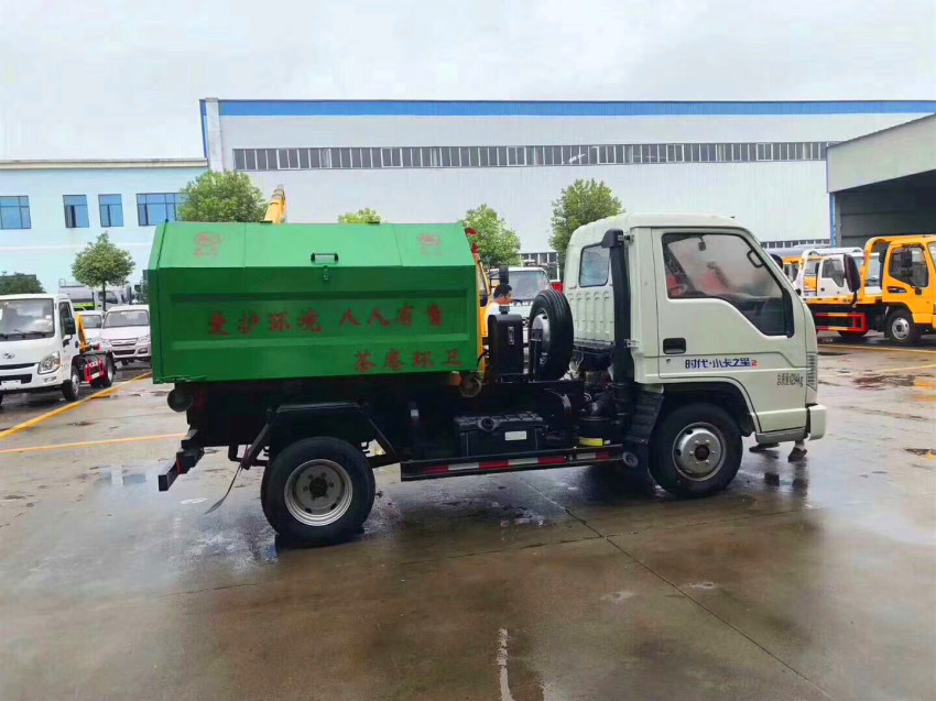 福田勾臂式垃圾車基本詳情采用福田微卡車身,2600mm軸距,福田正宗國五),5檔變速箱,油剎,2噸后橋,175R14LT輪胎,獨懸大梁,帶整套燃氣系統,標配電子助力。外形尺寸4280×1600×1900(mm)。采用國標碳鋼3mm板材制作,采用武鋼產Q235-A型。 帶電磁取力,齒輪泵,液壓油缸,廂體兩側開門,帶液壓撐桿,后門帶密封條,帶鎖緊裝置,四角帶滾動輪,可自卸。采用好質量油漆,車廂外部做防銹處理,車身油漆為白色,垃圾箱為上白下藍。福田小型垃圾車