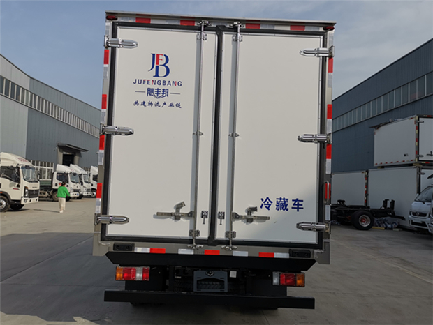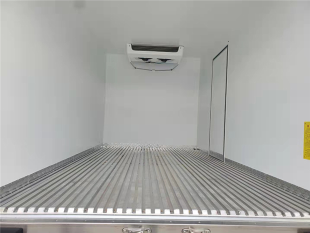 國六慶鈴M100藍牌冷藏車廂體配置為:采用斷橋隔熱工藝,整體框架結構制作,廂體內、外壁材料為玻璃鋼板,采用高密度保溫層,廂板內帶有骨架,廂體厚度80mm,門框,門飾件、包角全部使用不銹鋼材質。最新款鋁合金包邊型材,廂體內采用LED照明燈及廂體示寬燈;門框密封條為橡膠材質,后門梁帶加厚防撞塊,加厚型不銹鋼鉸鏈及鎖件。車體副梁采用510L高強度鋼制作,底板為鋁花紋板(標配塑鋼花紋板,可選鋁花紋板,不銹鋼板),車廂后門帶一個上車扶手,其余標配;