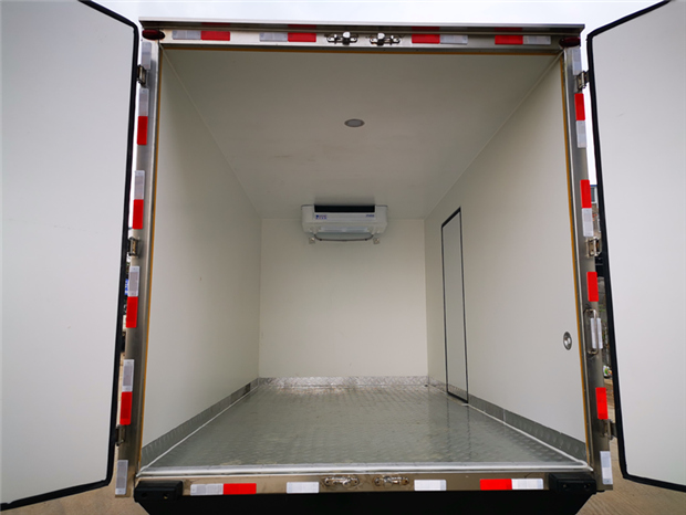 福田歐馬可4米2冷藏車廂體配置為:采用斷橋隔熱工藝,整體框架結(jié)構(gòu)制作,廂體內(nèi)、外壁材料為玻璃鋼板,采用高密度保溫層,廂板內(nèi)帶有骨架,廂體厚度80mm,門框,門飾件、包角全部使用不銹鋼材質(zhì)。最新款鋁合金包邊型材,廂體內(nèi)采用LED照明燈及廂體示寬燈;門框密封條為橡膠材質(zhì),后門梁帶加厚防撞塊,加厚型不銹鋼鉸鏈及鎖件。車體副梁采用510L高強度鋼制作,底板為鋁花紋板,車廂后門帶一個上車扶手,其余標(biāo)配;