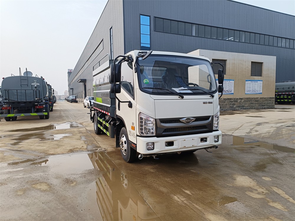 福田7方藍牌灑水車標配前噴(鴨嘴)、后沖、后灑、側噴、后置式工作平臺,平臺上配置綠化水炮(可 360°旋轉,既可以調成柱狀,也可以調成霧狀,更可以調成直沖狀、大雨、中雨、小雨、毛毛雨),配備優質大功率專用灑水泵(可自吸自排,可從河里或池塘抽水到罐體),取力器,雜物過濾網,消防接口,自流球閥系統、取力器、球閥、濾網均為國家標準產品,主管道加粗,法蘭墊、法蘭盤加厚,大通徑球閥。整體具備性能優良安全可靠、效率高、流量大、維修方便等特點。