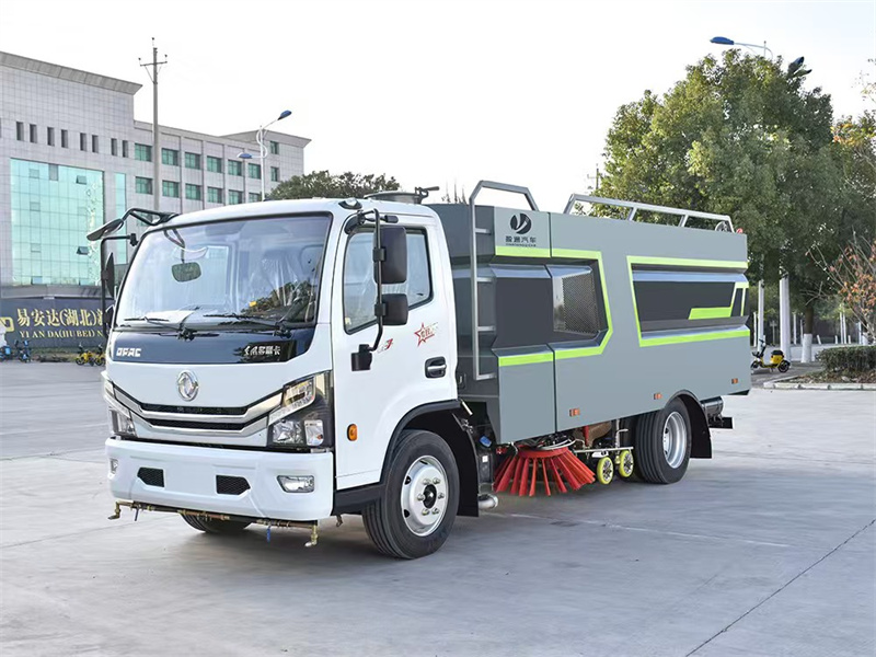 1. 東風多利卡洗掃車采用洗,掃,吸,混合的方式收集垃圾,濕式除塵、電液