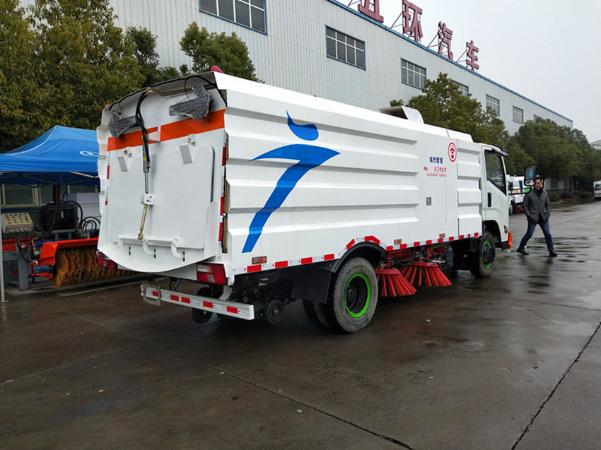 1、掃路車采用吸掃結合的方式收集垃圾,濕式除塵、電液控制,液壓傾翻卸料的作業方式對路面進行清掃作業。