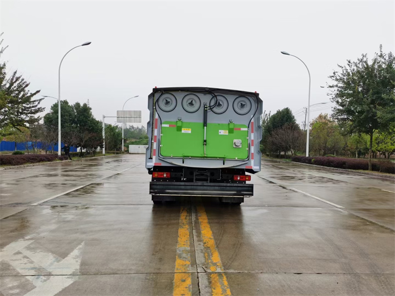 6)具備倒車保護(hù)裝置,在作業(yè)過程中如遇緊急倒車,智能化的控制系統(tǒng)會自動停止作業(yè)并收回掃盤、吸盤和側(cè)噴桿;具有防止舉升垃圾箱翻車保護(hù);具有檢修安全保護(hù)。