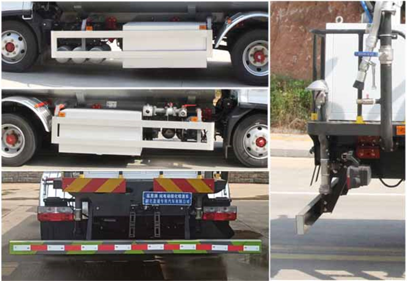 備注 | 東風8方純電動灑水車該車主要用于城鄉(xiāng)園林綠化,路面噴灑;主要裝置為罐體及噴灑裝置.罐體總?cè)萘?6.63立方米;罐體有效容積6.3立方米;介質(zhì):丙酮水溶液,密度950千克/立方米,罐體外形尺寸(長×長軸×短軸)(mm):4000×1900×1260.側(cè)防護材料為鋁合金+Q235碳鋼,連接方式為螺栓連接,后防護材料為:Q235碳鋼,連接方式為:螺栓連接,后防護截面尺寸:120×50mm,后部防護離地高度(mm):460;儲能種類/單體及總成生產(chǎn)企業(yè):磷酸鐵鋰蓄電池/寧德時代新能源科技股份有限公司;電機額定功率:110kW;電機峰值功率:180kW;ABS系統(tǒng)型號:ABS/ASR-24V-4S/4M,生產(chǎn)企業(yè):襄陽東風隆誠機械有限責任公司;選裝前部不帶電子水炮,該狀態(tài)下車長為7330mm;當前部安裝電子水炮時,車長為7830mm,車輛前伸500mm.選裝電子水炮樣式.僅采用底盤3800mm軸距改裝。 | ||
