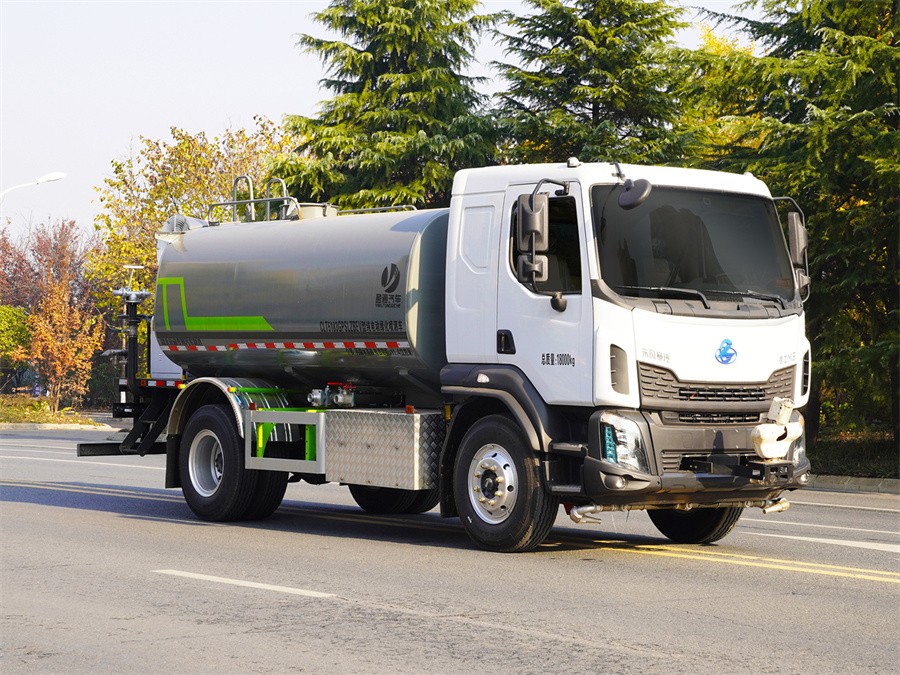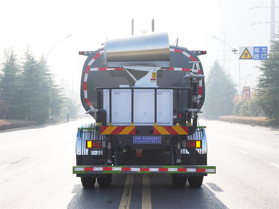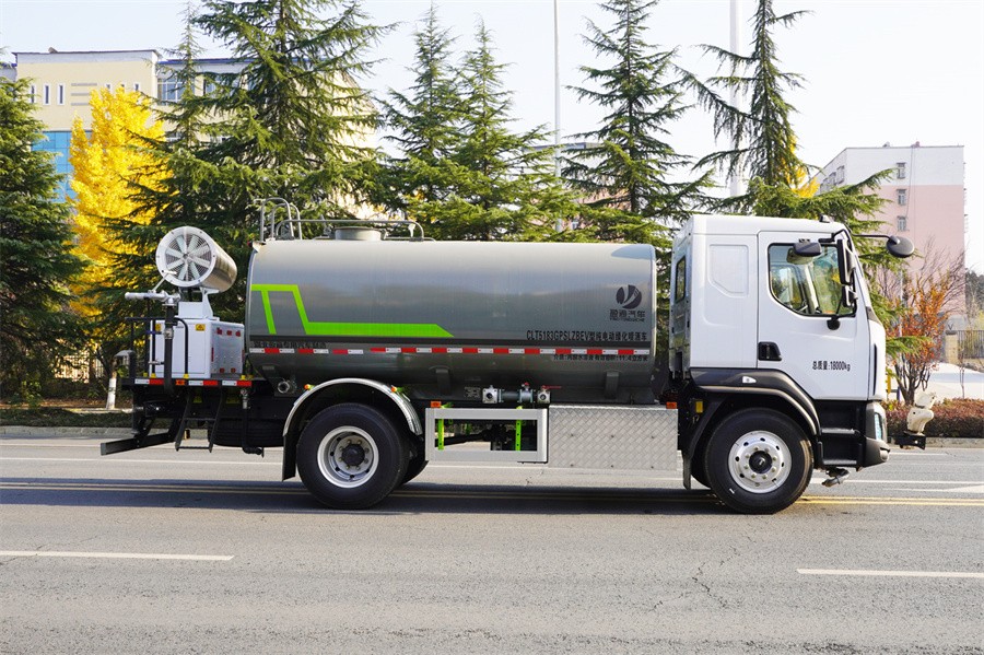 東風柳氣12方電動灑水車該車主要用于城鄉園林綠化,路面噴灑;主要裝置為罐體及噴灑裝置;罐體總容量:11.7立方米;罐體有效容積11.4立方米;介質:丙酮水溶液,密度950千克/立方米,罐體外形尺寸(長×長軸×短軸)(mm):4000×2300×1540,4200×2300×1450;側防護材料為鋁合金+Q235碳鋼,連接方式為螺栓連接;后防護材料為:Q235碳鋼,連接方式為:螺栓連接;后部防護截面尺寸(mm):120×50,后部防護離地高度(mm):490;ABS型號/企業:ABS-E 4S/4M/采埃孚商用車系統(青島)有限公司,CM4XL-4S/4M/廣州瑞立科密汽車電子股份有限公司;隨底盤安裝限速裝置,限速89km/h;儲能裝置單體種類/儲能裝置單體生產企業/儲能裝置總成生產企業:磷酸鐵鋰蓄電池/湖北億緯動力有限公司/湖北億緯動力有限公司;電機種類/電機型號/電機生產企業/電機控制器型號/電機控制器生產企業/電機額定功率/電機峰值功率:永磁同步/TZ368XS064/湖南中車商用車動力科技有限公司/KTZ54X42SP35/湖南中車商用車動力科技有限公司/80kw/160kw.選裝前部電子水炮樣式,選裝前部不帶電子水炮,該狀態下車長為7790mm,7615mm;當前部安裝電子水炮時,車長為8290mm,8115mm,車輛前伸500mm;選裝后部不帶霧炮樣式.選裝噴灑裝置樣式,選裝箭頭燈裝置,選裝大小工作平臺.