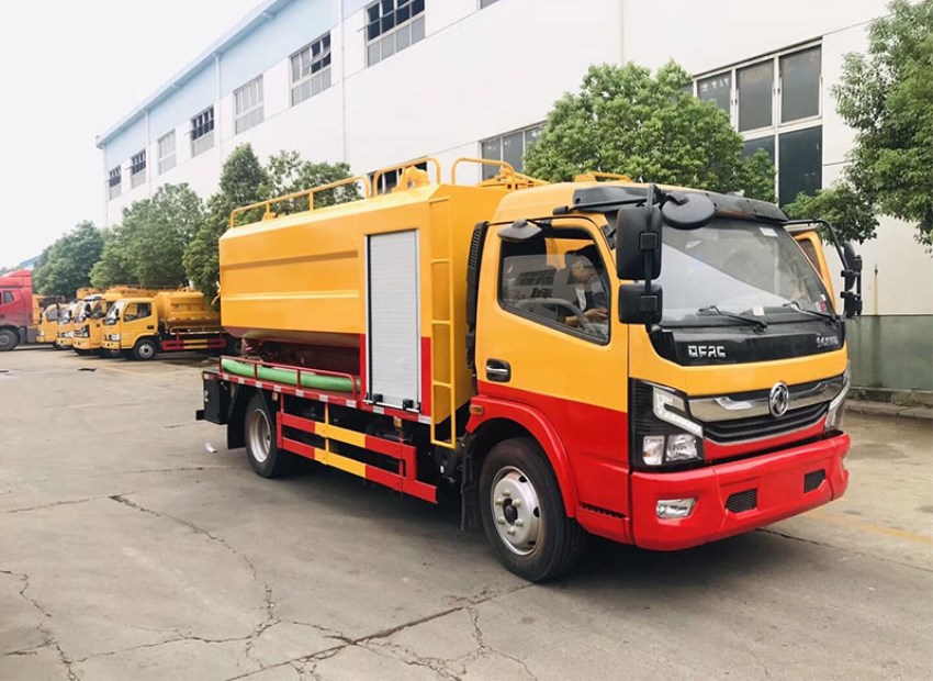 東風大多利卡D7新款駕駛室,底盤型號:EQ1110SJ8BDC 廣西玉柴150馬力渦輪增壓,5.5噸后橋,8.25R16鋼絲胎,雙層大梁,斷氣剎,帶空調 ,ABS,6檔變速箱。吸污罐:7立方,罐體6毫米碳鋼,吸污部分:配SK-9水循環泵,(選裝SK-12水循環泵)進氣管加過濾網,防溢閥加高,兩根8米吸污管,后蓋4個卡扣鎖緊,后視糞窗,后部150mm的球閥和100mm的球閥均帶出口,吸污罐體和清洗罐體外互通。右后邊150mm排污口帶球閥。清洗水罐3立方,4毫米碳鋼,右側消防進水,氣控推水,帶過濾網,采用天津通潔高壓清洗泵,24兆帕,170升流量,選裝215L流量,22兆帕高壓泵,標配60米內徑19#高壓管,組合噴頭一套,罐體兩邊為平臺,后背700mm高壓清洗卷盤,后部左右后一個示寬燈,整車工程黃, 其它標準配置。