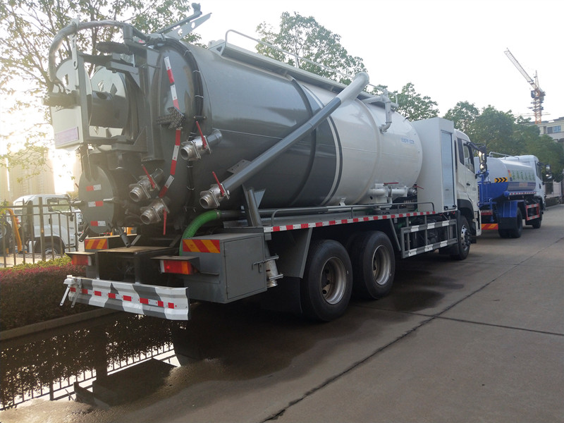 由于吸糞膠管始終浸沒于液面上,糞罐內的空氣被抽吸后,因其得不到補充而越來越稀薄,致使罐內壓力低于大氣壓力,糞液即在大氣壓力使用下,經吸糞膠管進入容罐;蛘哂捎诤缥芙咏薜,空氣被不斷排入糞罐時,因其沒有出路而被壓縮,致使罐內壓力高于大氣壓力,糞液即在壓縮空氣的作用下,經虹吸管,吸糞膠管排出罐外。吸污車主要用于清洗城市下水道,管道的沉積物,死角泥溝的疏通,也可用于清洗工業排液管道,壁面等,并可兼作灑水,運水和沖公路用,緊急時可用于救火。